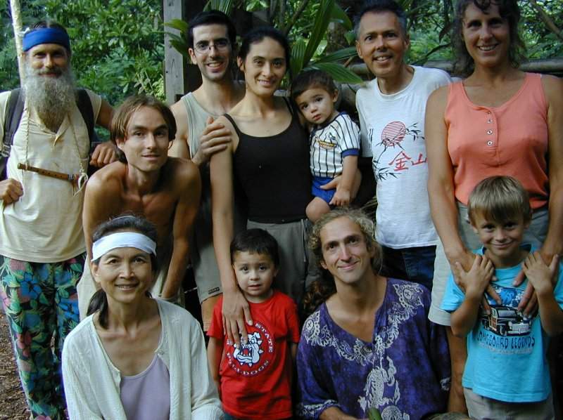 A group of our Natural Health M2M penpals convened in person on the Big Island in October, 2000 for a grand Millennial Bash celebration. This picture was taken at the raw food retreat called Pangaia . From left to right standing: Forest Greenwald, non-M2M Pangaia resident Tim Gorter, Steve and Tricia [...removed...] with their child Skylar, M2M Coordinator Bob Avery, Susan Mazzocco; front row: Helen Sun; Forrest [...removed...]; rawfoodist instincto author, former M2M'er, and resident of Pangaia Ano (Zephyr) Tarletz, and Giancarlo Mazzocco. |